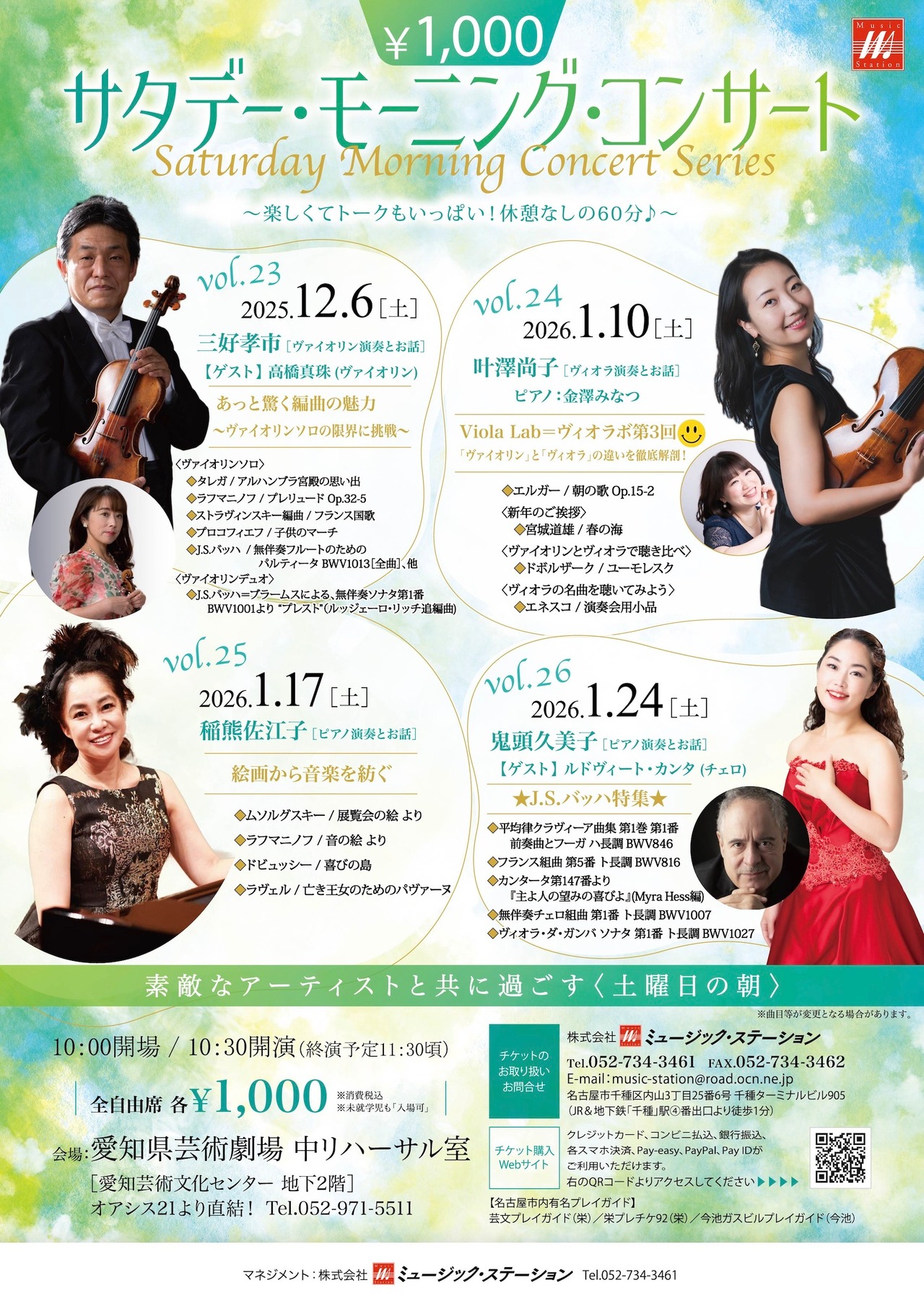 2025年12月6日(土) サタデー・モーニング・コンサート vol.23〜土曜日の朝、素敵なアーティストと過ごすクラシカルタイム〜