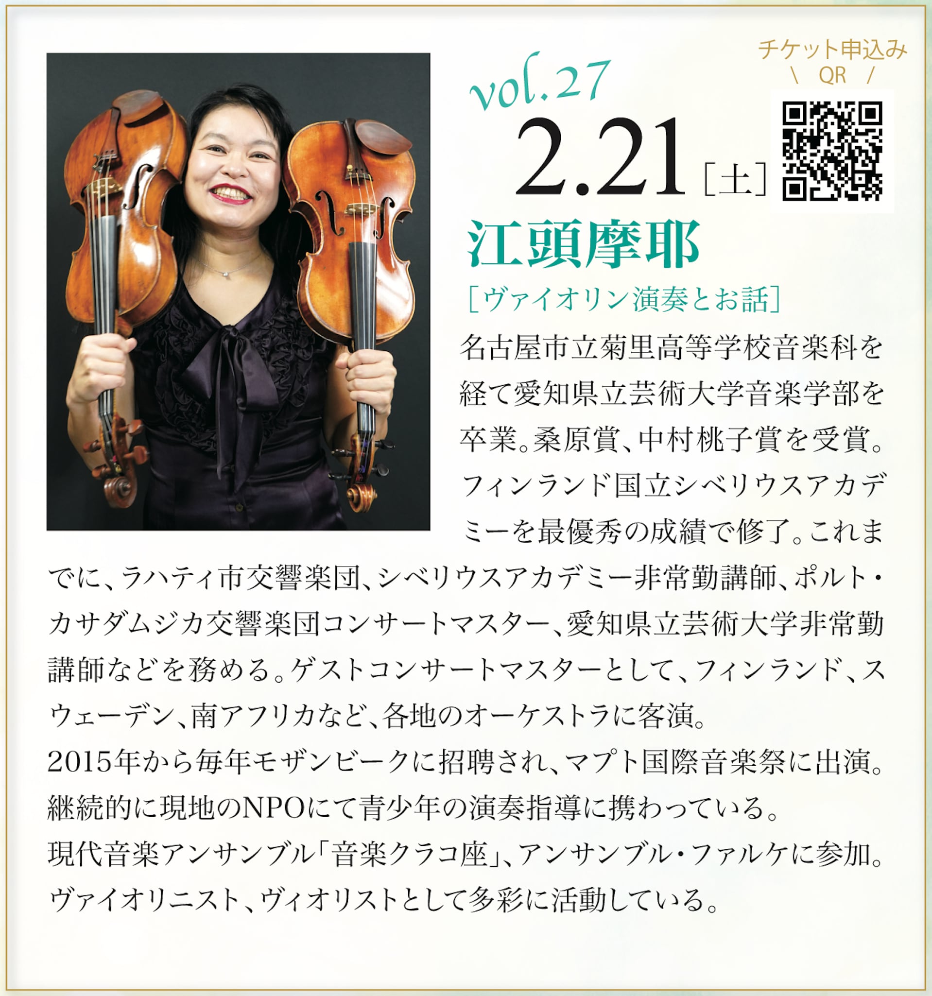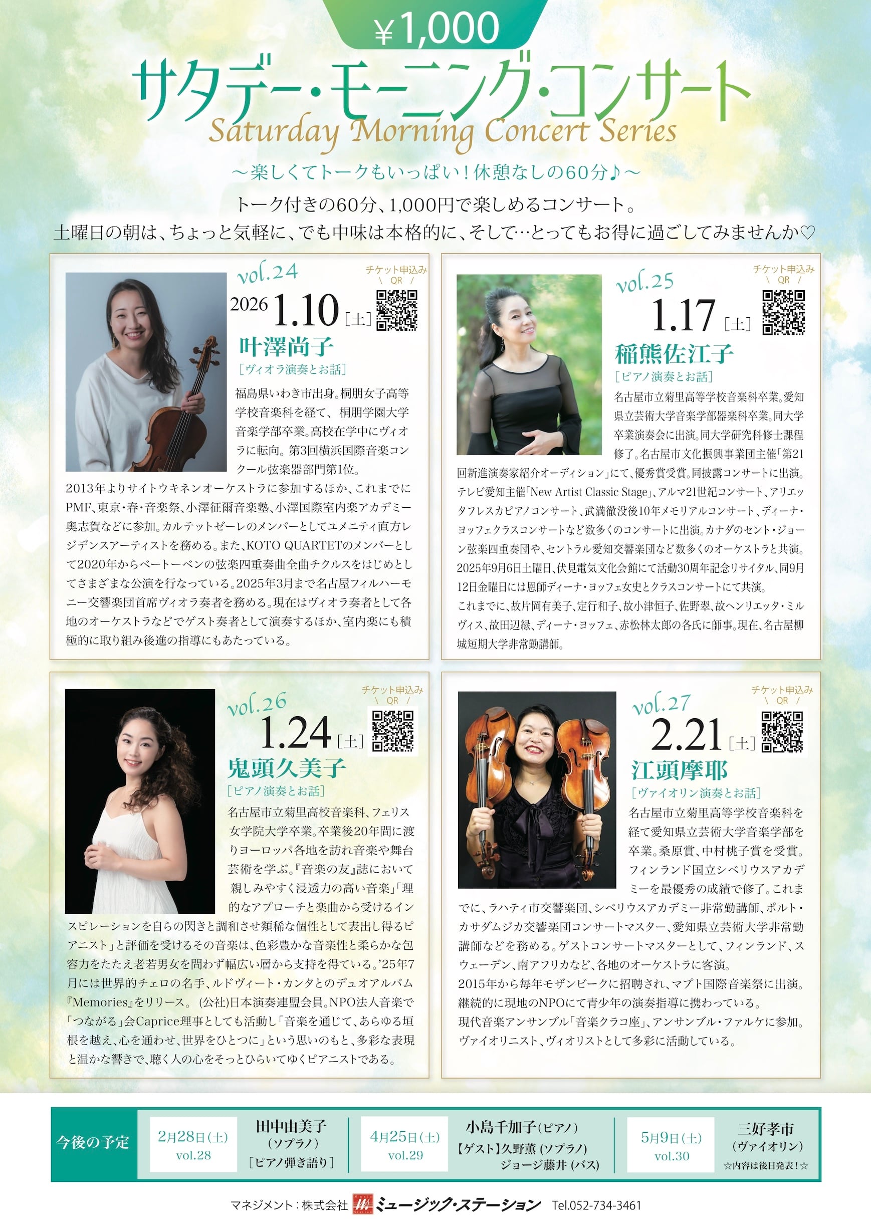 2026年2月21日(土) サタデー・モーニング・コンサート vol.27 〜土曜日の朝、素敵なアーティストと過ごすクラシカルタイム〜
