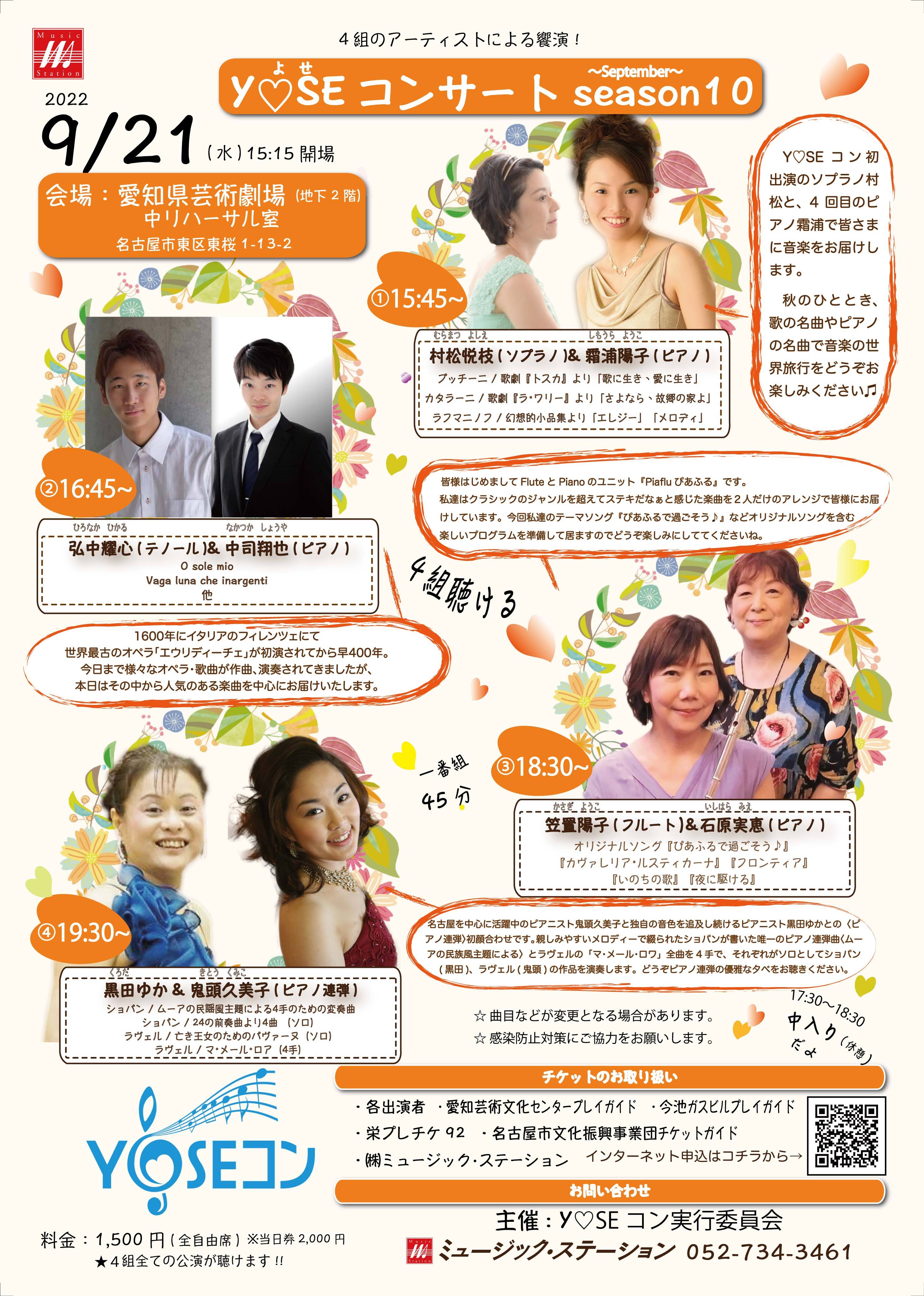 2022年9月21日(水) Y♡SEコン ③笠置陽子(フルート)&石原実恵(ピアノ)