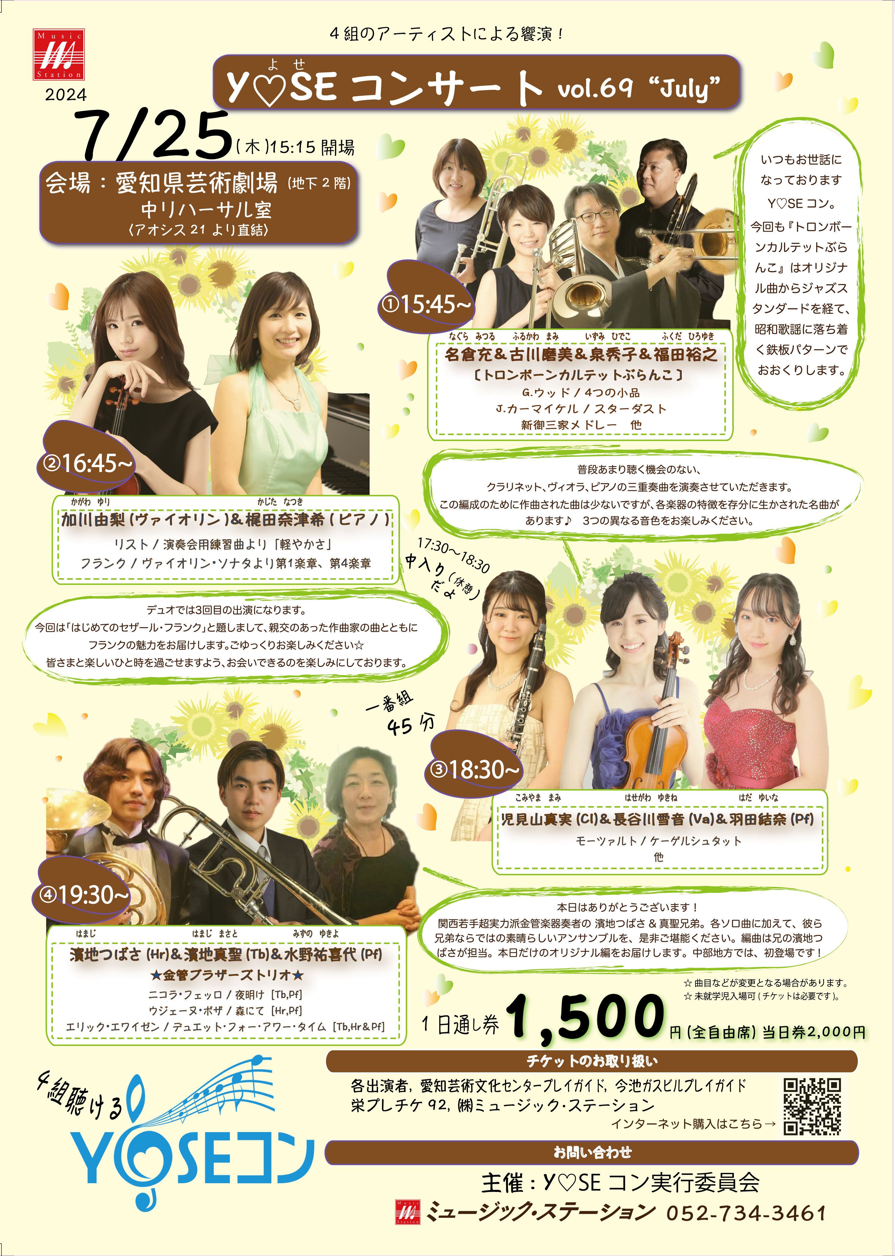 2024年7月25日(木) Y♡SEコン vol.69 “July”《1日通し券》 ♪豪華なラインナップで音楽三昧の1日を♪